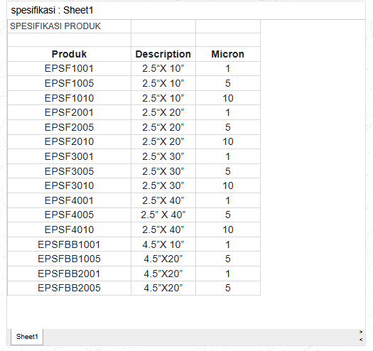 Durabilitas: Serat polypropylene memiliki ketahanan yang baik terhadap bahan kimia dan korosi, membuat cartridge ini cocok untuk berbagai kondisi air.